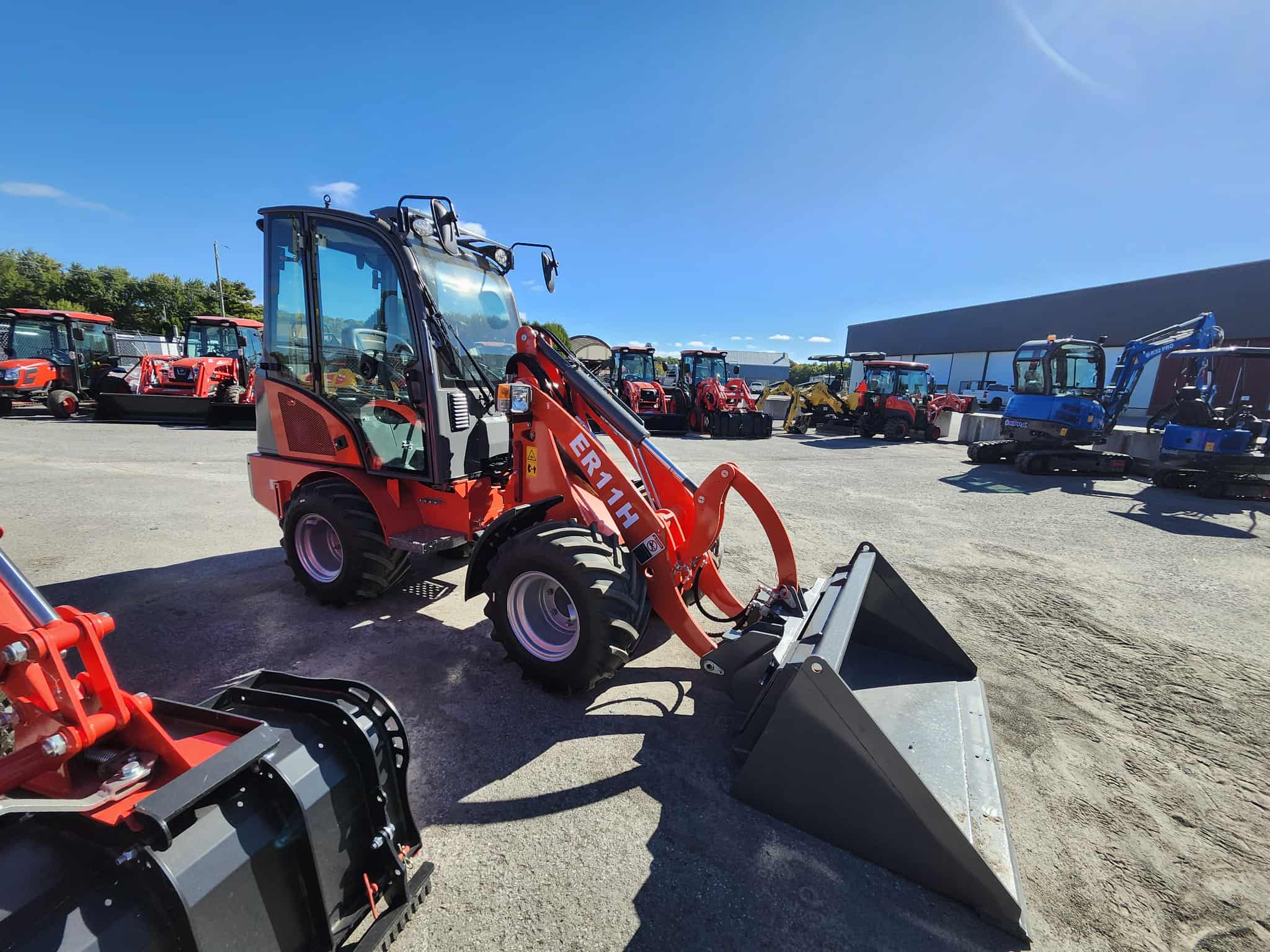 Nous vous présentons notre nouveau produit : l'ER11H, une petite chargeuse d'une capacité de charge de 1 tonne ! 1. Moteur puissant : Équipée de moteurs Kubota Euro V et EPA4 de 18,5 kW pour une puissance élevée. 2. Transmission hydrostatique avancée : Grâce à un système hydrostatique italien, la stabilité et l'efficacité du système sont améliorées. 3. Structure compacte : Sa conception compacte est adaptée aux espaces restreints et aux zones de travail restreintes. 4. Système de commande multifonction : Équipée d'un système de commande multifonction avancé, elle offre une expérience d'utilisation flexible et précise. 5. Excellente capacité de charge : Avec une capacité de charge de 1,1 tonne, elle est adaptée à divers scénarios d'utilisation pour une efficacité accrue. 6. Cabine ergonomique : La cabine/toit est conçue pour être confortable, offrir un environnement de travail optimal et réduire la fatigue du conducteur. 7. Conception structurelle haute résistance : Utilisation de matériaux haute résistance pour une structure solide et une durabilité et une fiabilité accrues. 8. Grande adaptabilité : La chargeuse est très adaptable et s'adapte à différentes conditions de travail et exigences opérationnelles. 9. Système de direction flexible : La chargeuse est équipée d'un système de direction flexible pour améliorer sa maniabilité et s'adapter à divers environnements de travail. 10. Divers accessoires disponibles : Différents accessoires sont disponibles pour répondre aux besoins de différents secteurs et opérations.