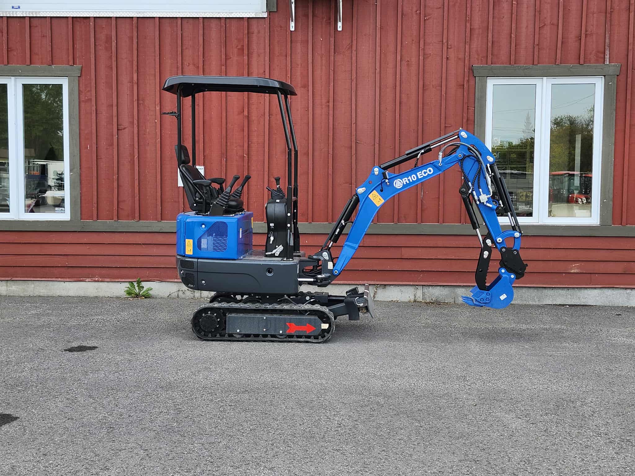 RIPPA R10-5 ECO - Contrôles Latéraux - À DIESEL Contrôles pilotés MOTEUR KUBOTA Radiateur de refroidissement d'huile hydraulique Moteur de déplacement interne protégé* Garde de protection de la tige des cylindres La majorité des boyaux hydrauliques sont protégés (passe à l'intérieur de la flèche) Cylindre protégé derrière la flèche principale** Toit avec 4 poteaux de support Siège opérateur deluxe confortable Raccord rapide hydraulique pour auxiliaire sur la vanne de dérivation Deux circuits hydrauliques auxiliaires Comprend un godet à dents de 12 pouces Comprend un pouce hydraulique